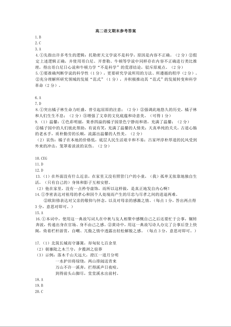 山东省淄博市高2025届高二下学期教学质量检测语文答案