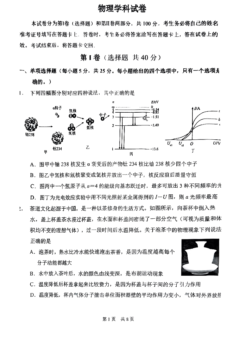 天津市南开区2024-2025学年第二学期高三质量监测(一)物理