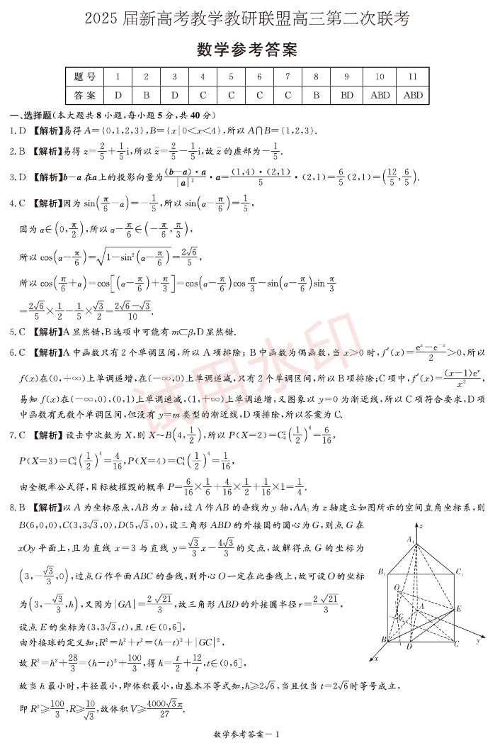湖南省新高考教学教研联盟2024-2025学年高三第二次联考数学答案