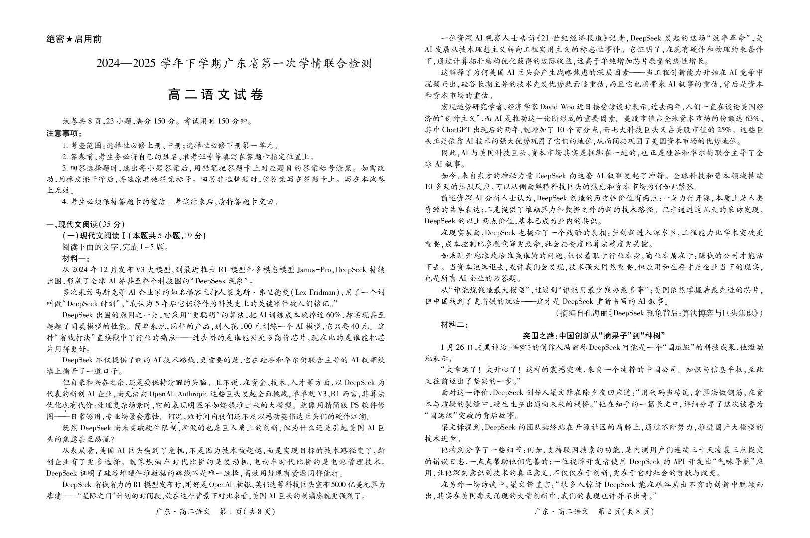 广东省部分校2024-2025学年高二下学期第一次学情联合检测语文