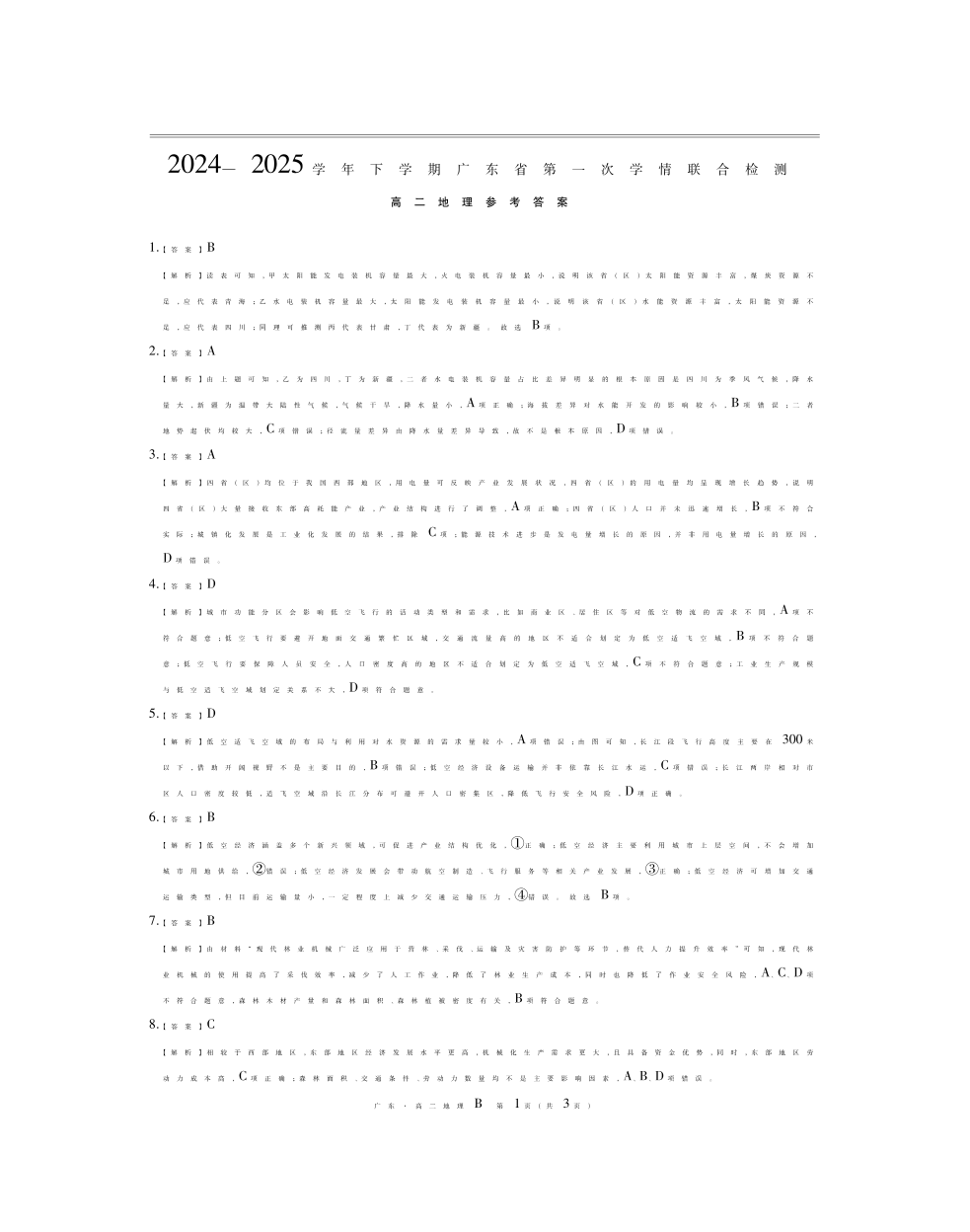 广东省部分校2024-2025学年高二下学期第一次学情联合检测地理答案