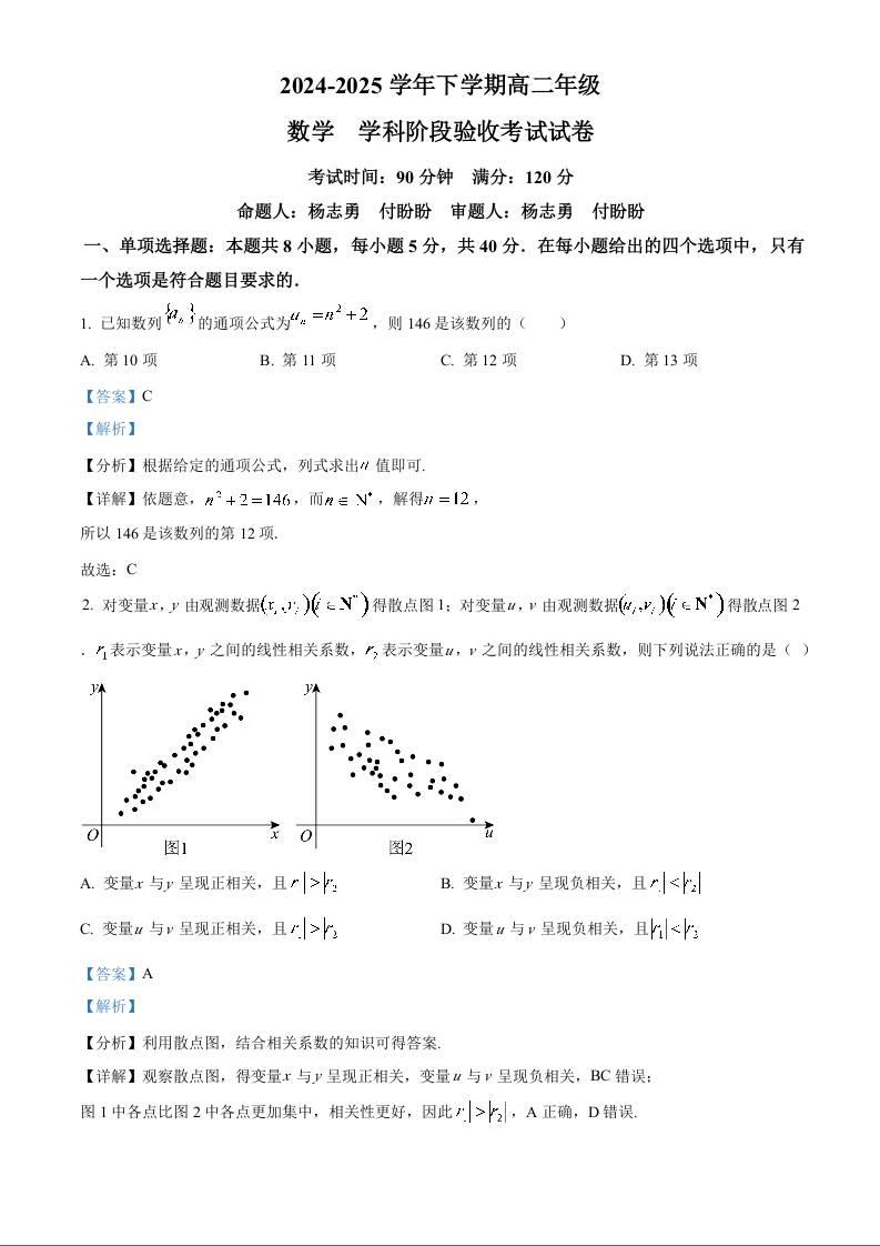 吉林省长春市东北师范大学附属中学2024-2025学年高二下学期3月月考试题数学(解析版)