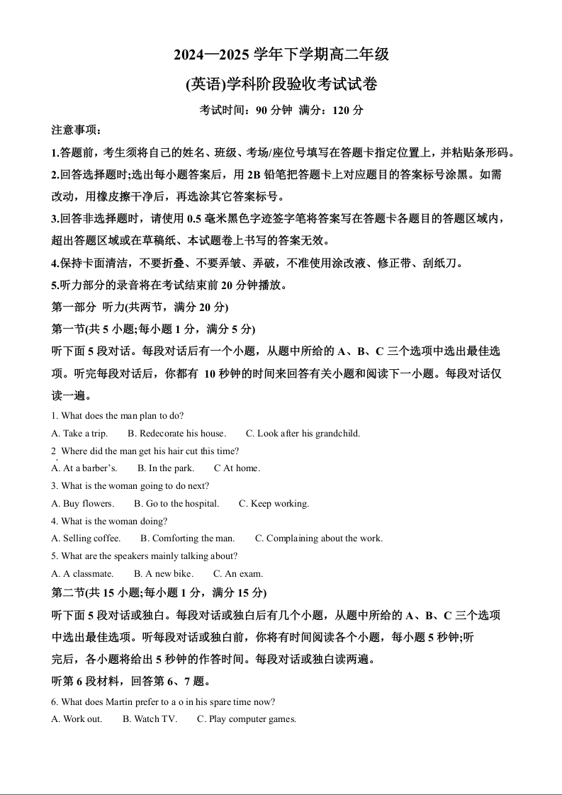 吉林省长春市东北师范大学附属中学2024-2025学年高二下学期3月月考试题英语(解析版)