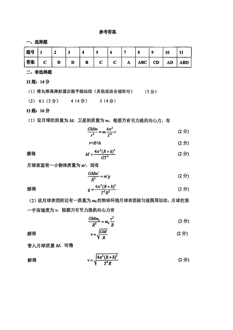 吉林省长春市东北师范大学附属中学2024-2025学年高二下学期3月月考试题物理答案