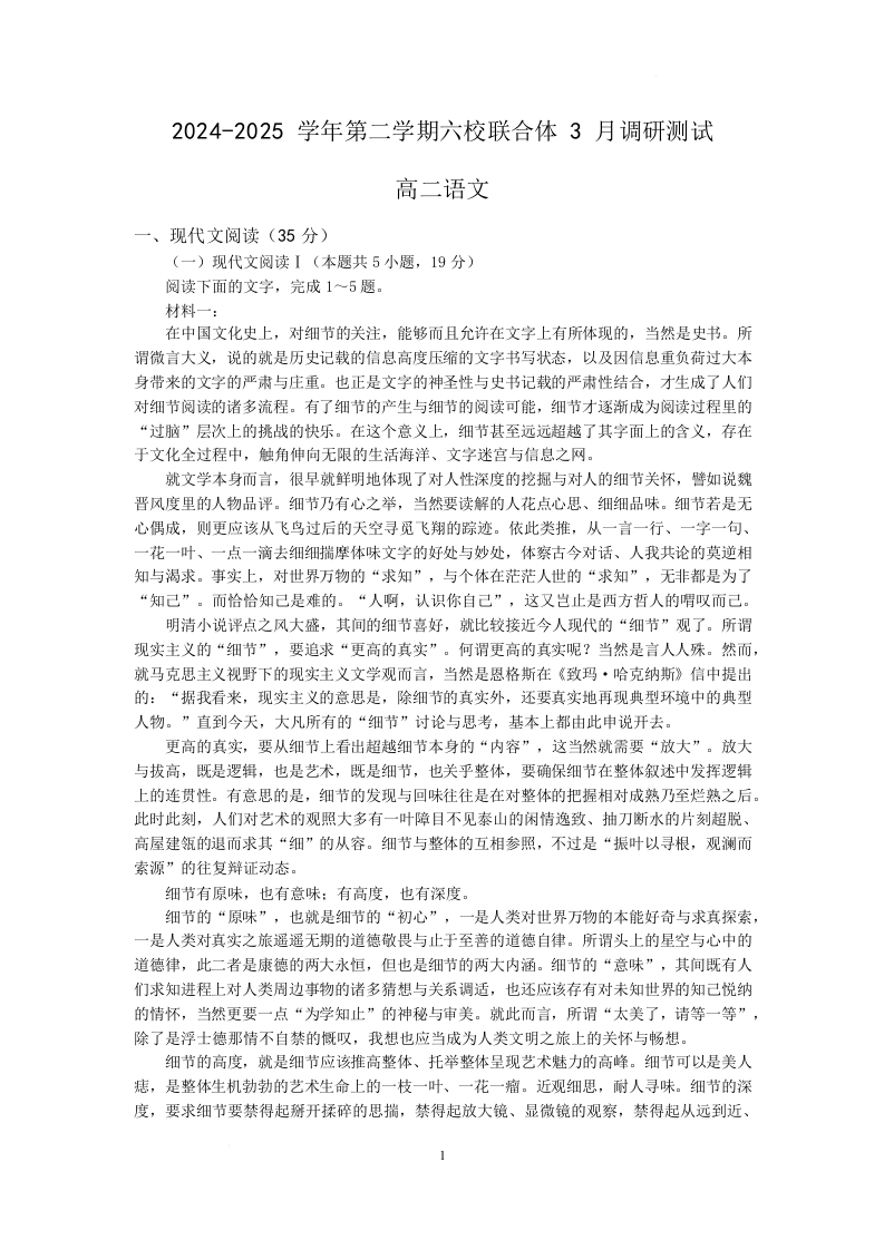江苏省南京市六校联合体2024-2025学年高二下学期3月调研测试语文+答案