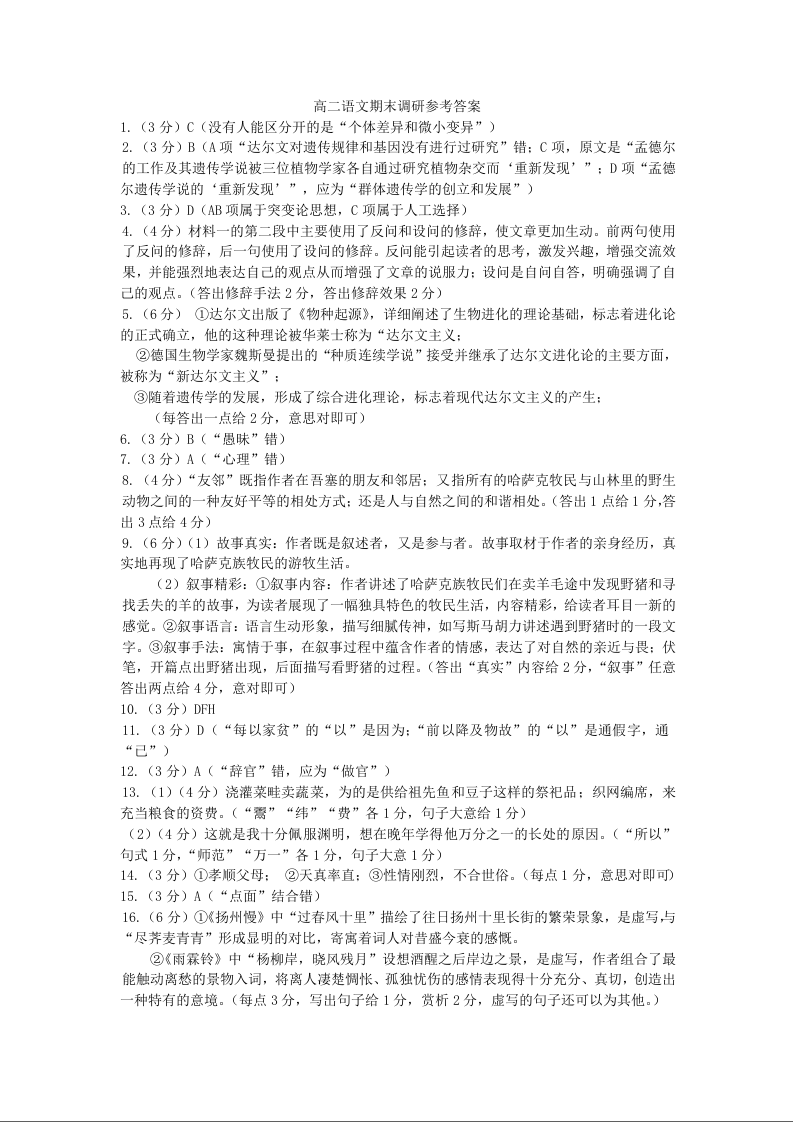 山西省运城市高2025届第二学期期末调研测试语文答案
