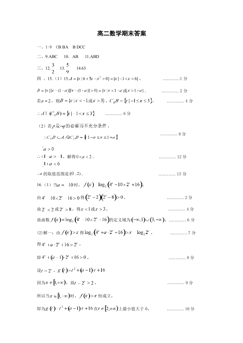 山西省运城市高2025届第二学期期末调研测试数学答案