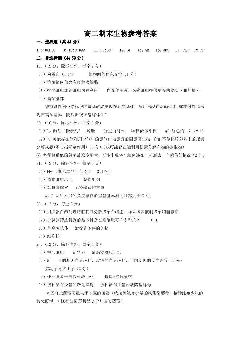 山西省运城市高2025届第二学期期末调研测试生物答案