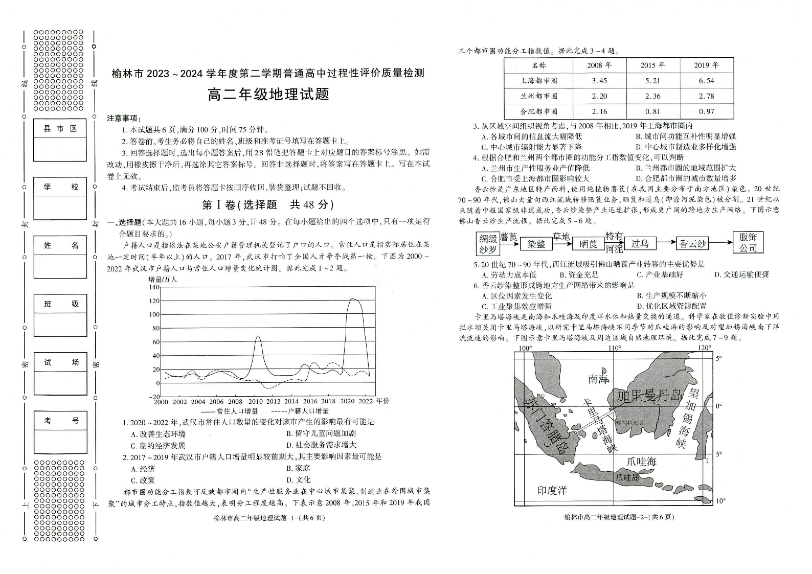 陕西省榆林市高2025届第二学期期末校际联考地理+答案