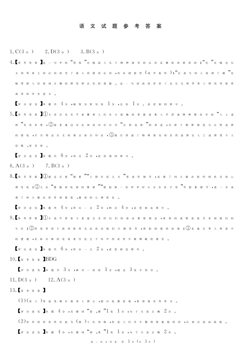 四川省九市高2025届第二学期期期末质量检测联考语文答案