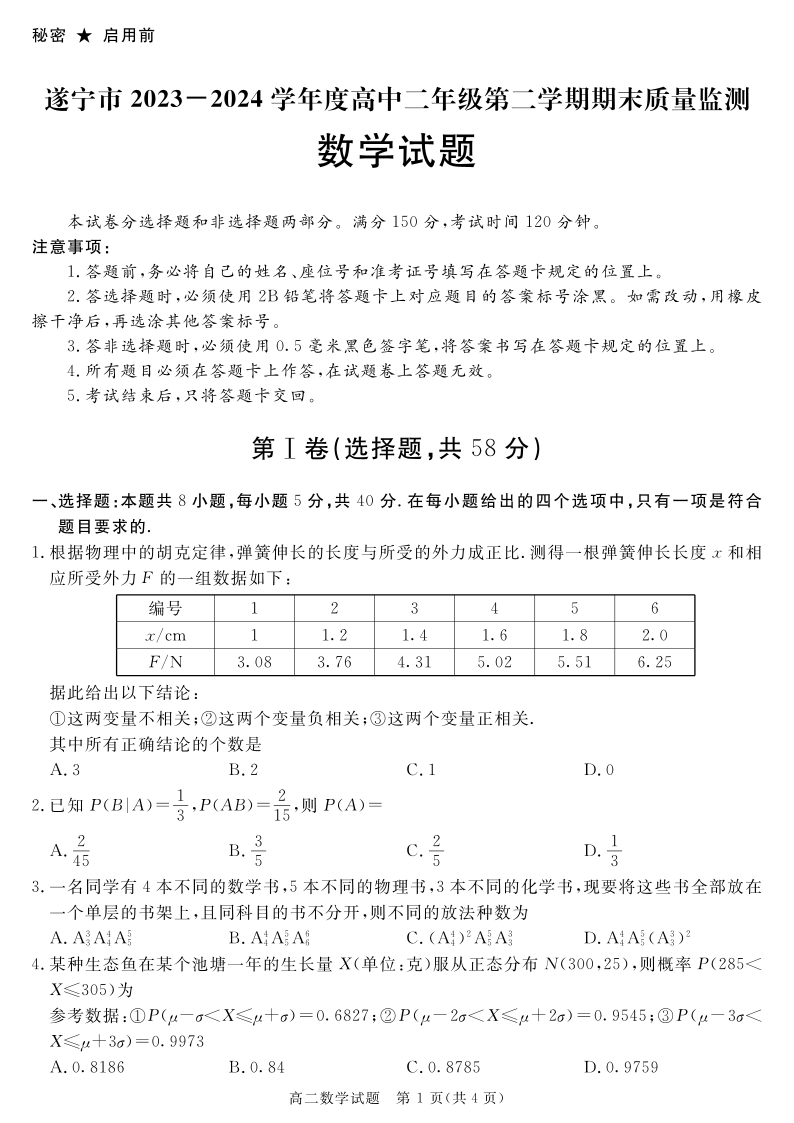 四川省九市高2025届第二学期期期末质量检测联考数学