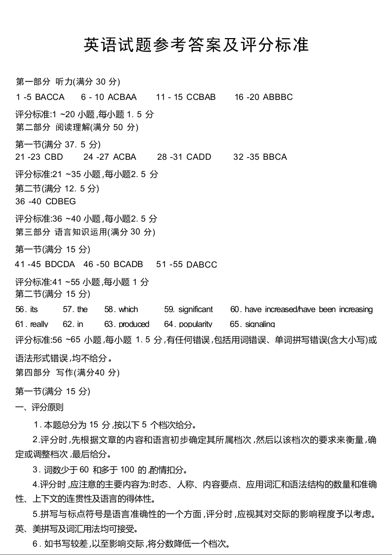 四川省九市高2025届第二学期期期末质量检测联考英语答案