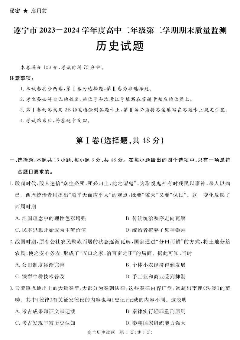 四川省九市高2025届第二学期期期末质量检测联考历史