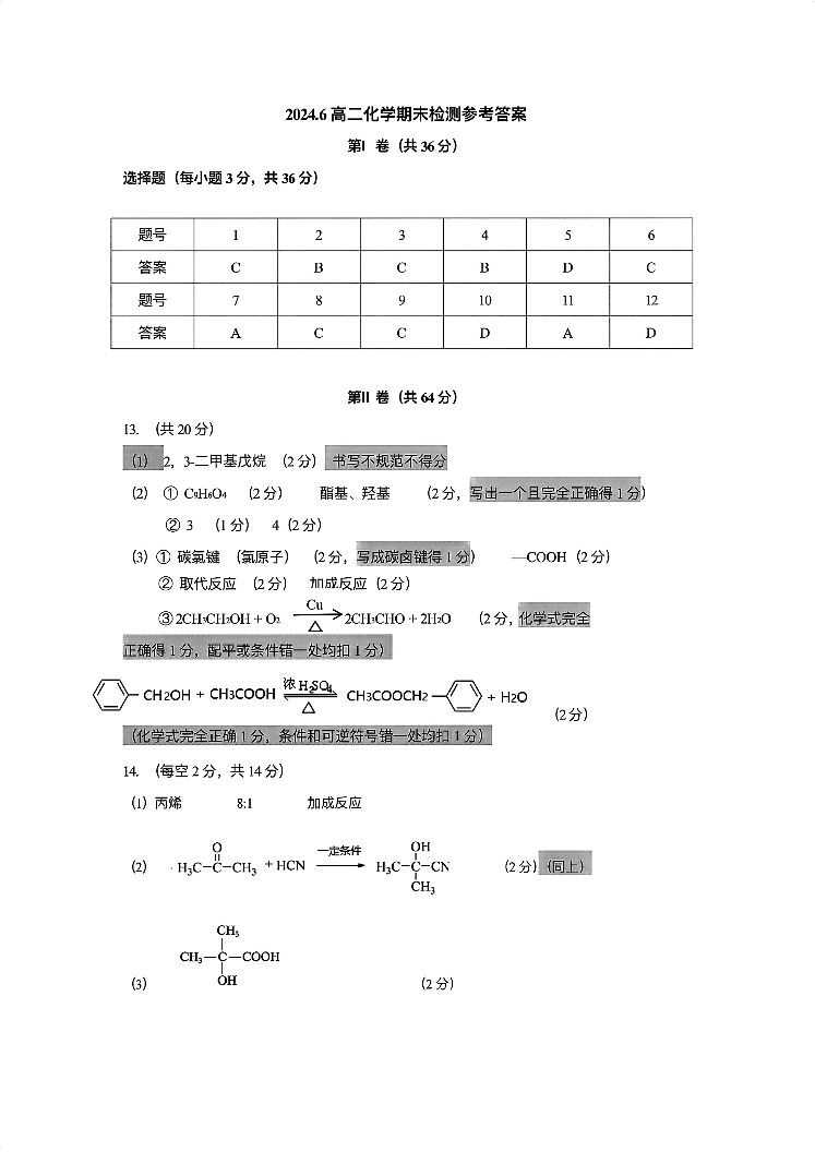 天津市红桥区高2025届下学期7月期末考试化学答案