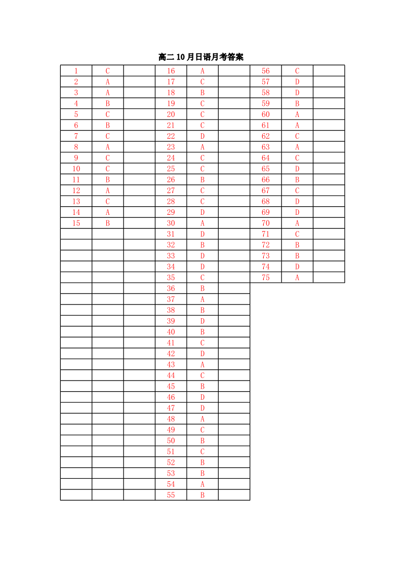 福建省三明第一中学2023-2024学年高二上学期10月月考日语答案