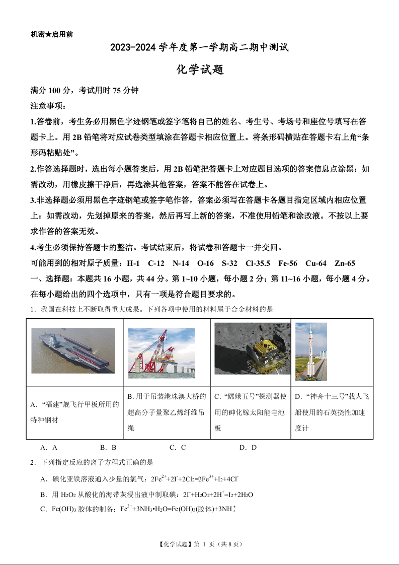 广东省阳江市2023-2024学年高二上学期10月期中考试试题化学+答案