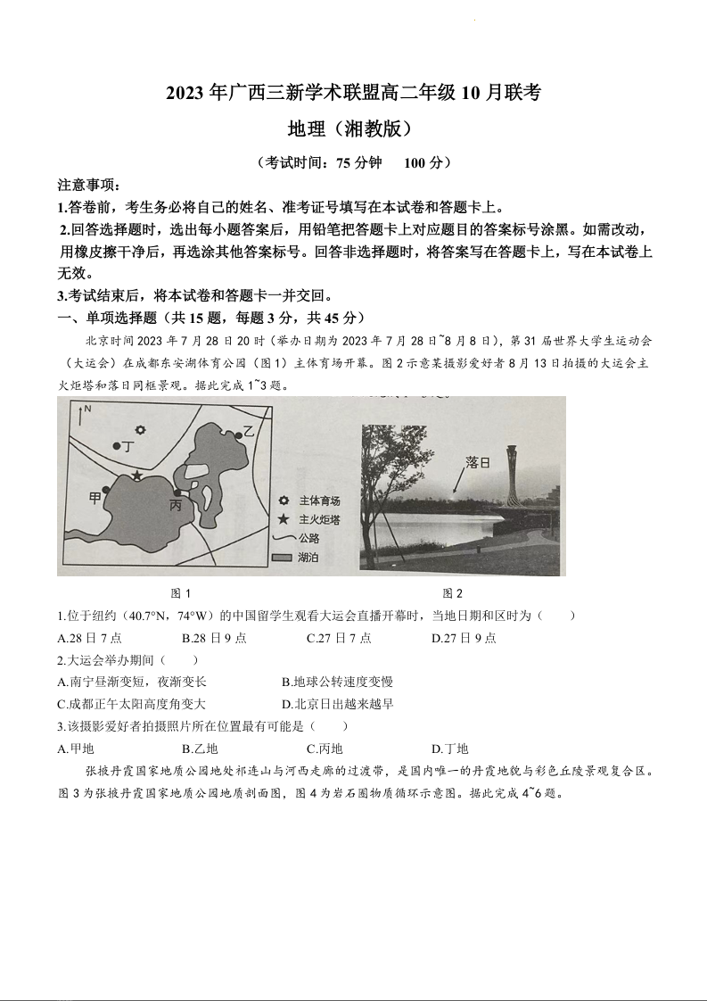 广西三新学术联盟2023-2024学年高二年级10月联考地理