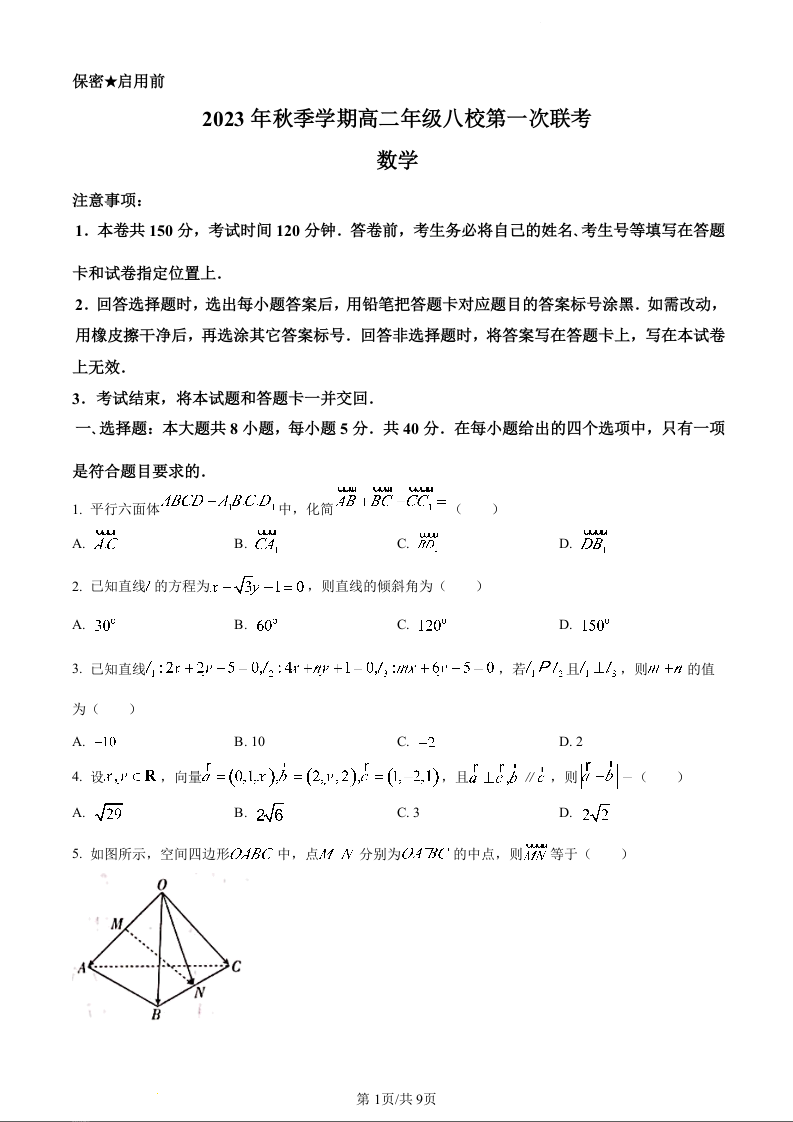 广西壮族自治区河池市八校联考2023-2024学年高二上学期10月月考数学+答案