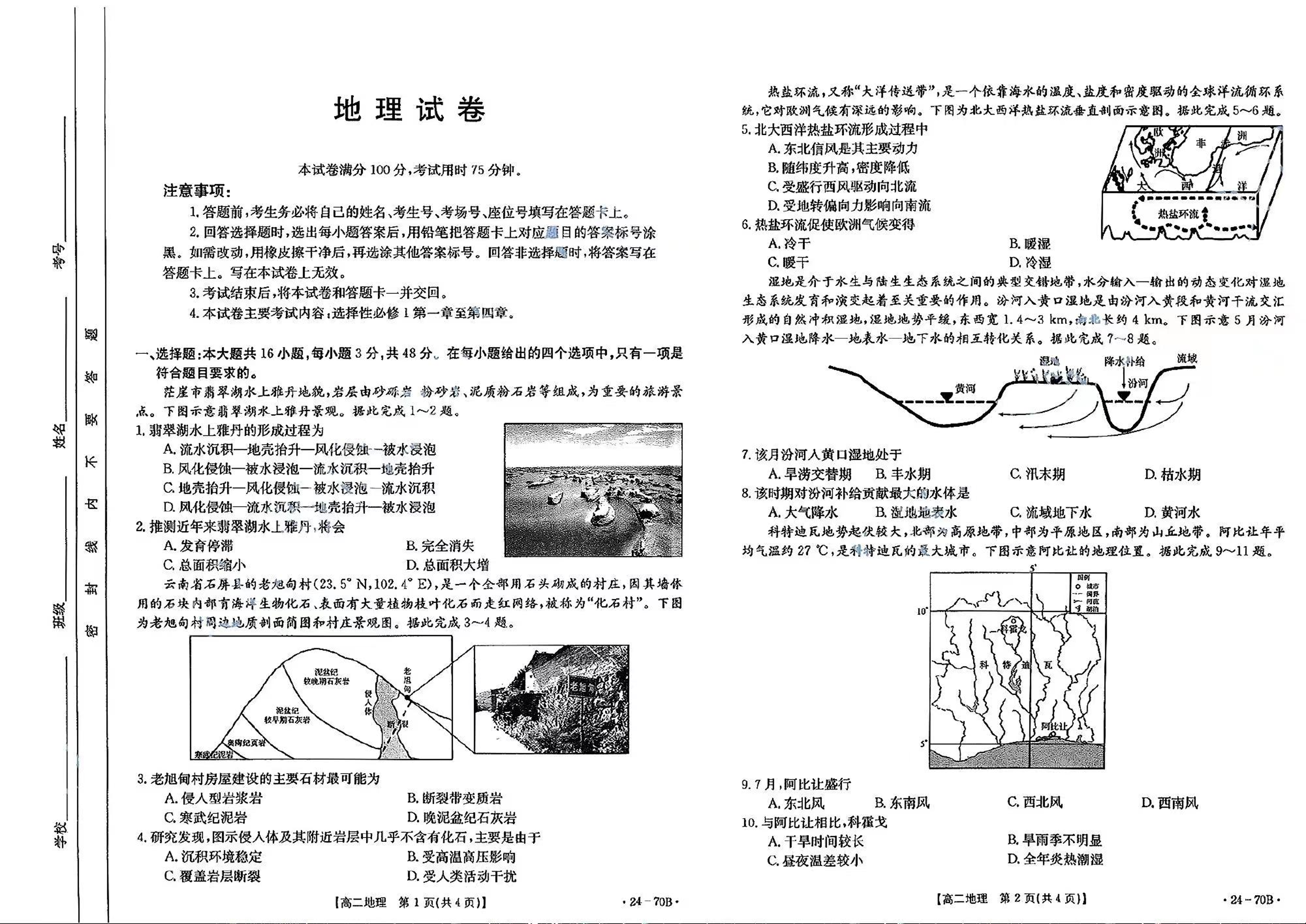 吉林省部分名校2023-2024学年高二上学期10月联考地理+答案