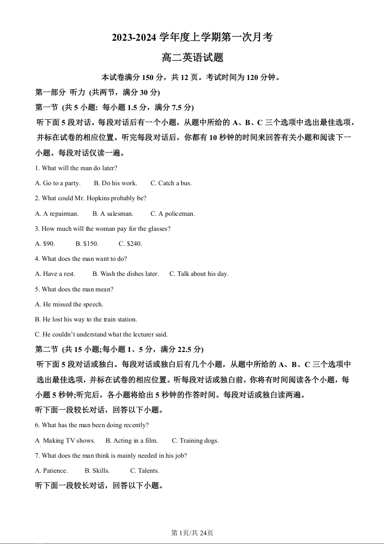 吉林省四校联考2023-2024学年高二上学期10月月考英语(精品解析版)
