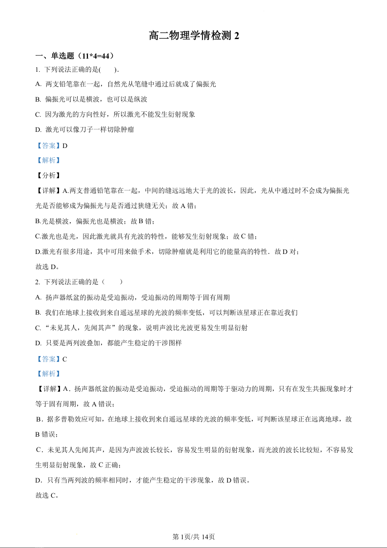 江苏省南京人民中学、南通海安市实验中学2023-2024学年高二上学期第一次月考物理(精品解析版)