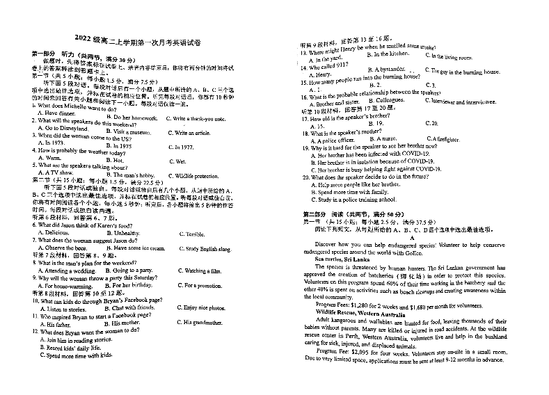 内蒙古赤峰实验中学2023-2024学年高二上学期10月月考试题英语+答案
