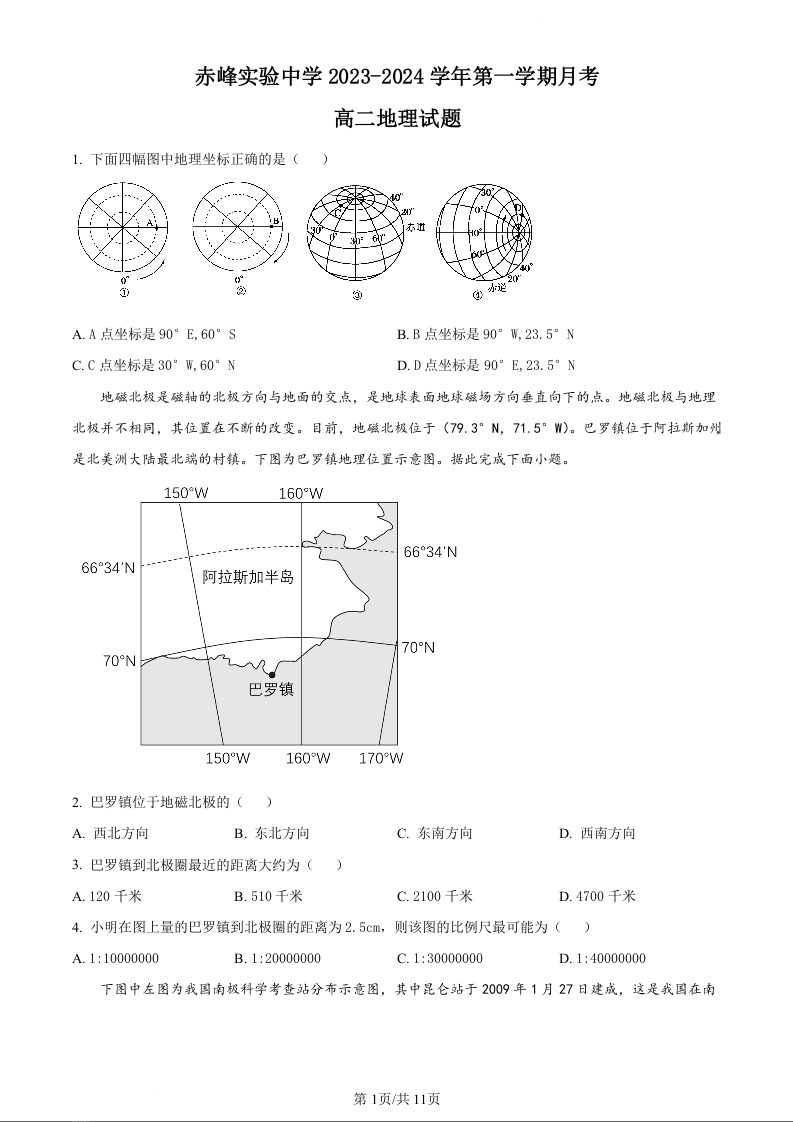 内蒙古赤峰实验中学2023-2024学年高二上学期10月月考试题地理(原卷版)