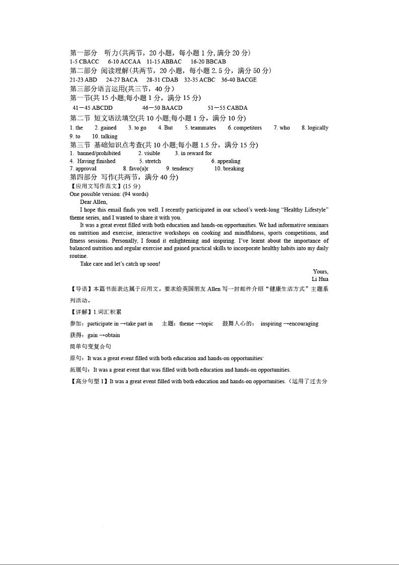 山西省大同市第一中学校2023-2024学年高二上学期10月月考英语答案