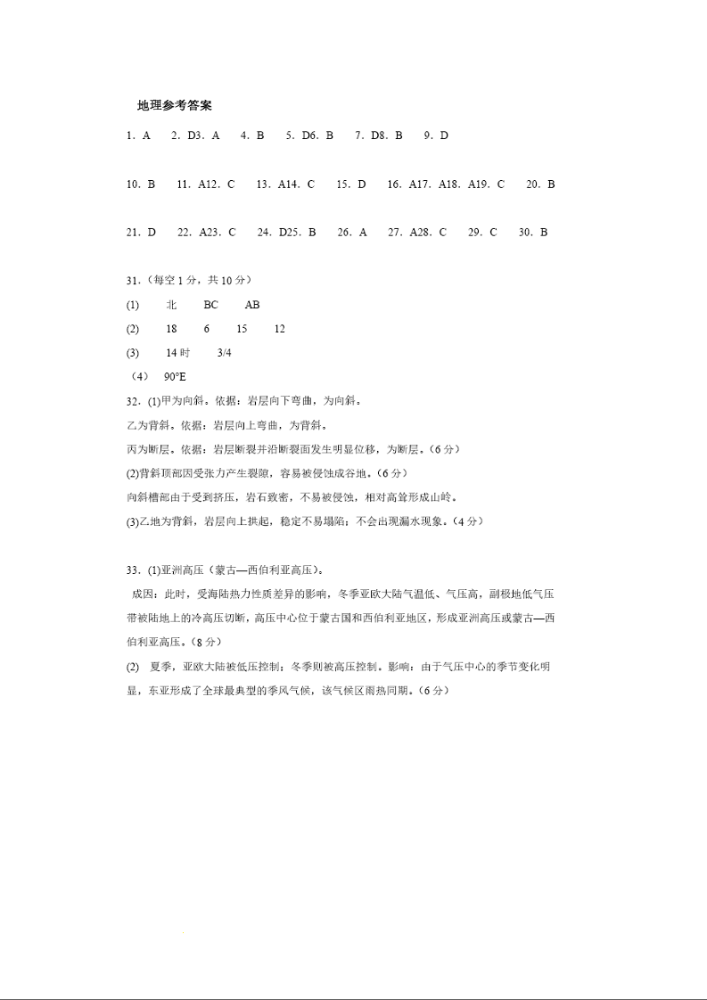 山西省大同市第一中学校2023-2024学年高二上学期10月月考地理答案