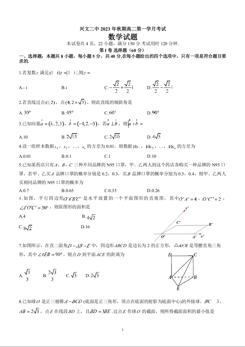 四川省宜宾市兴文第二中学校2023-2024学年高二上学期10月月考数学