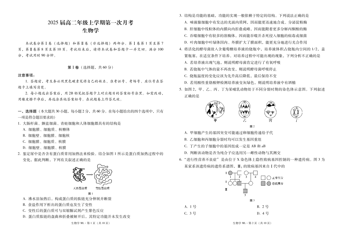 云南师范大学附属中学2023-2024学年高二上学期10月月考 生物