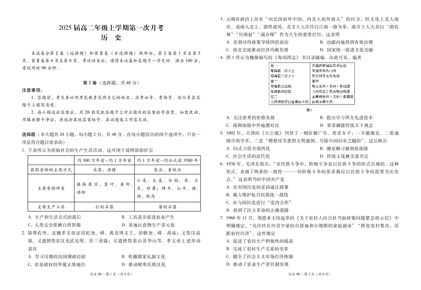 云南师范大学附属中学2023-2024学年高二上学期10月月考 历史
