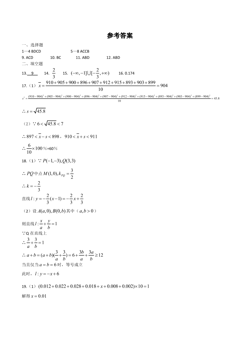 重庆市西南大学附中2023-2024学年高二上学期10月阶段性检测 数学答案