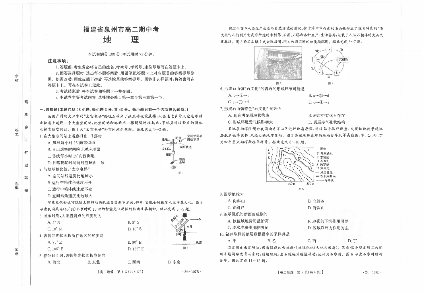 福建省泉州市安溪县2023-2024学年高二上学期11月期中试题地理