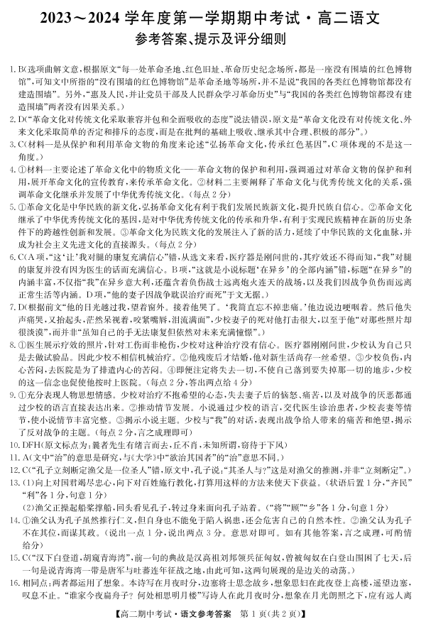 甘肃省酒泉市四校2023-2024学年高二上学期期中联考试题语文答案