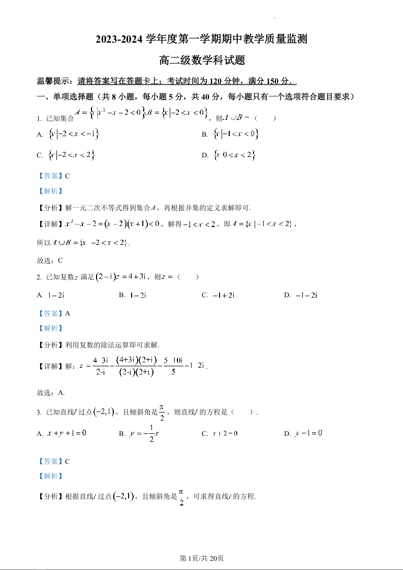 广东省揭阳市揭东区2023-2024学年高二上学期期中考试试题数字(精品解析版)