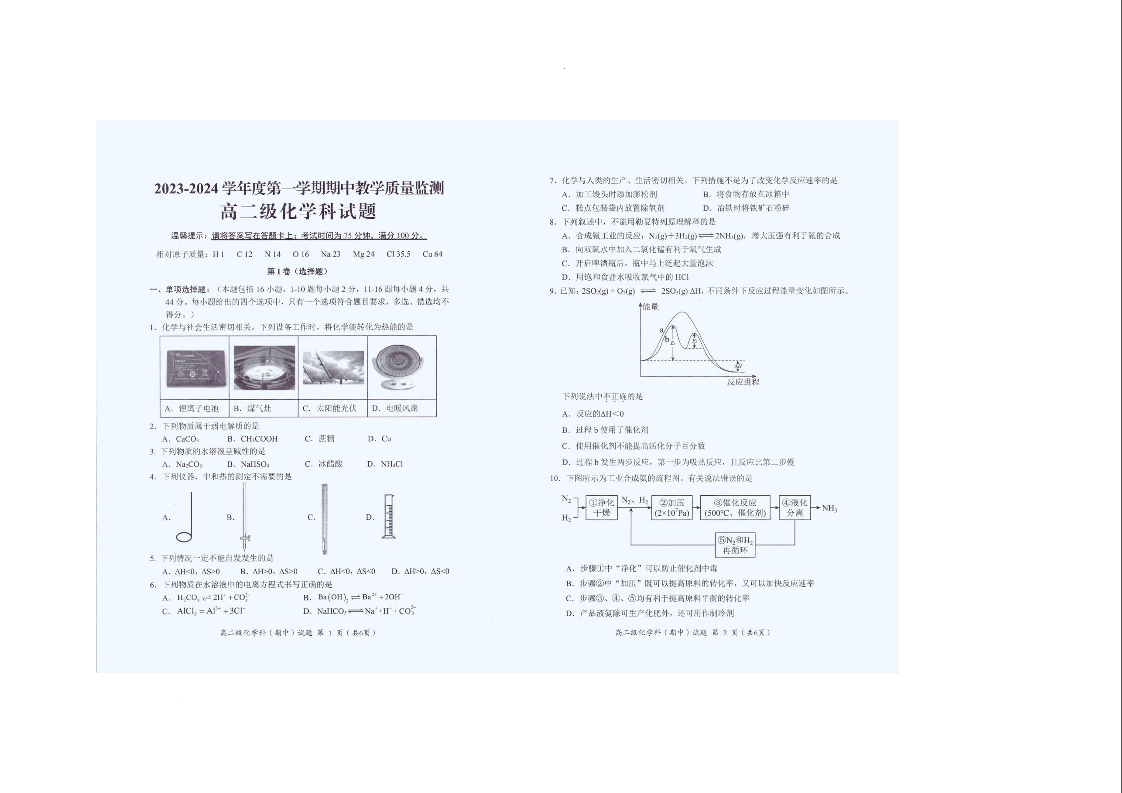 广东省揭阳市揭东区2023-2024学年高二上学期期中考试试题化学