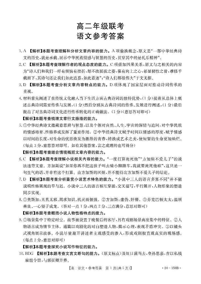 贵州省部分高中学校2023-2024学年高二上学期第二次联考试卷语文答案