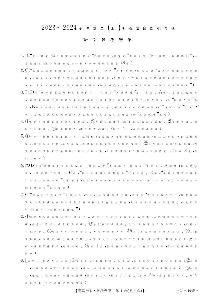 河北省邢台市五校质检联盟2023-2024学年高二上学期11月期中试题语文答案