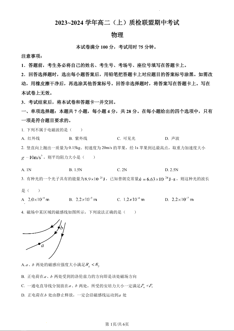 河北省邢台市五校质检联盟2023-2024学年高二上学期11月期中试题物理(原卷版)