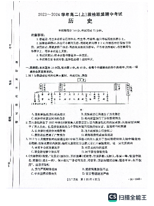 河北省邢台市五校质检联盟2023-2024学年高二上学期11月期中试题历史