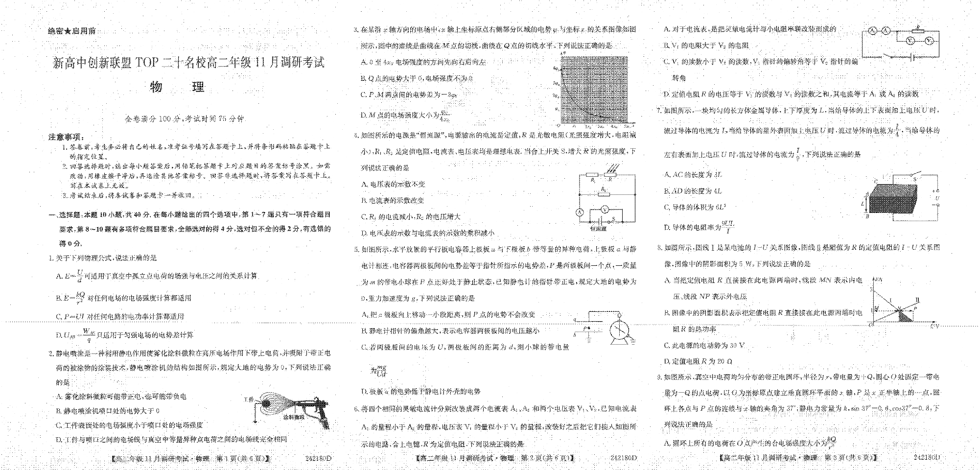 河南省新高中创新联盟TOP二十名校2023-2024学年高二上学期11月调研考试 物理
