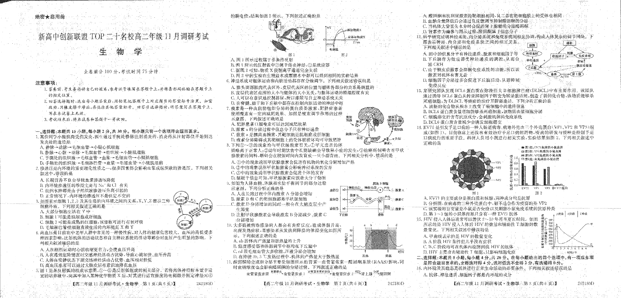 河南省新高中创新联盟TOP二十名校2023-2024学年高二上学期11月调研考试 生物