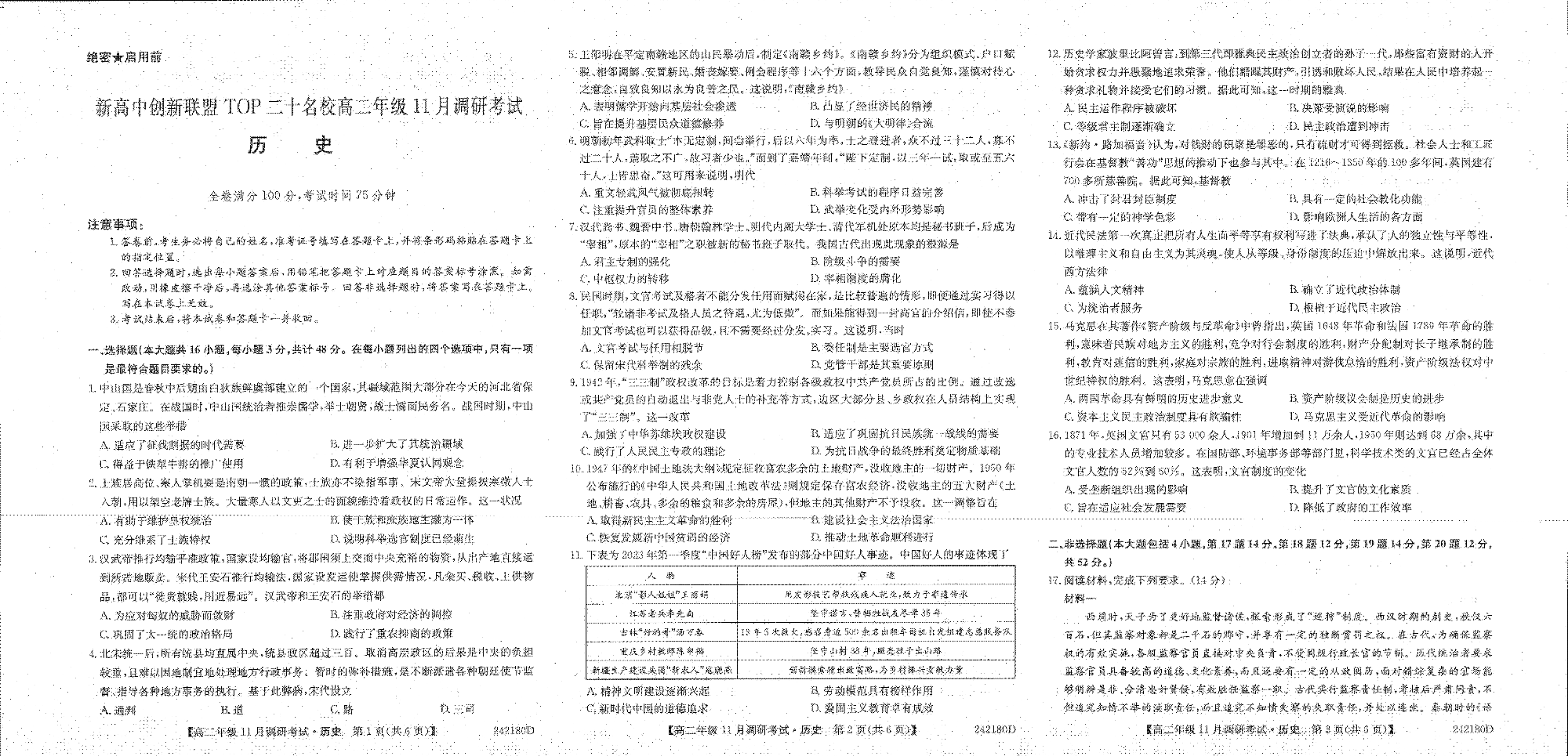 河南省新高中创新联盟TOP二十名校2023-2024学年高二上学期11月调研考试 历史