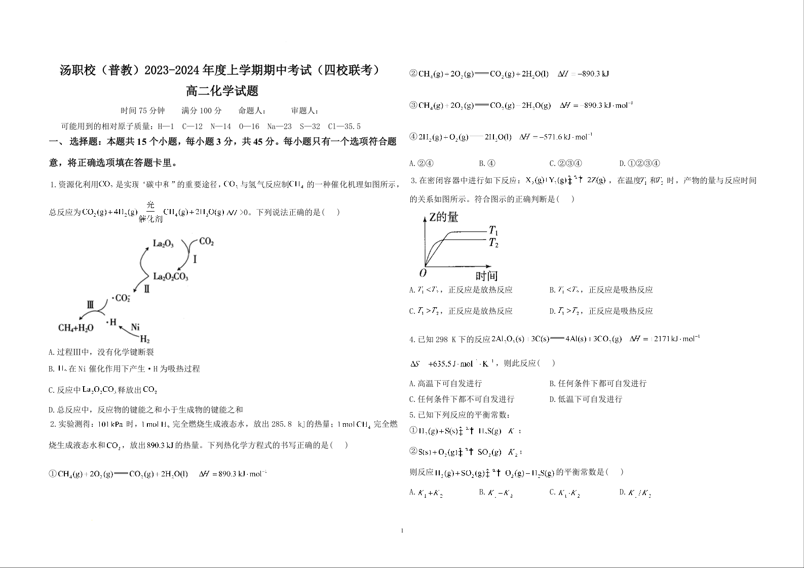 黑龙江省佳木斯市四校2023-2024学年高二上学期期中联考试题化学+答案