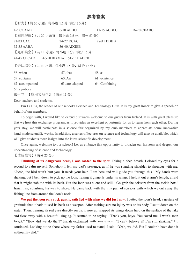 湖北省武汉市七校2023-2024学年高二上学期期中联考试题英语答案
