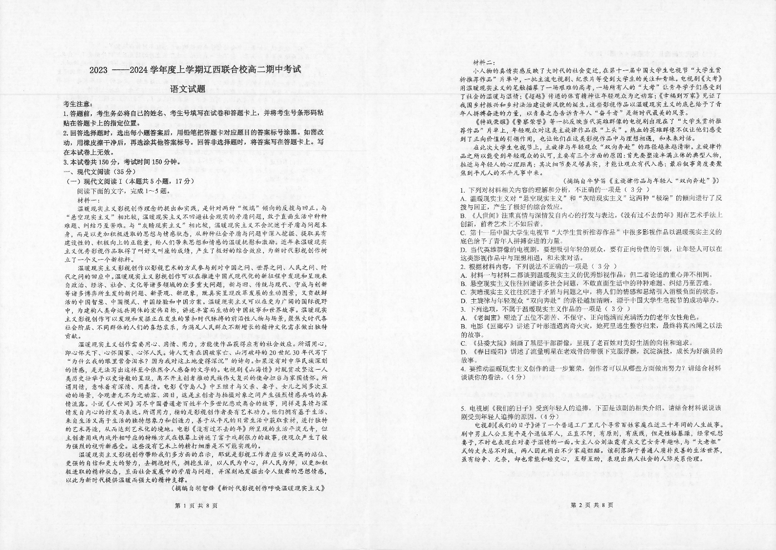 辽宁省辽西联合校2023-2024学年高二上学期期中考试试题语文