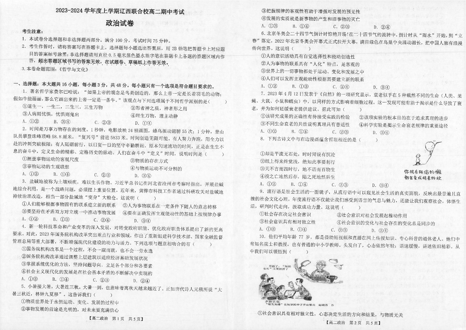 辽宁省辽西联合校2023-2024学年高二上学期期中考试试题政治