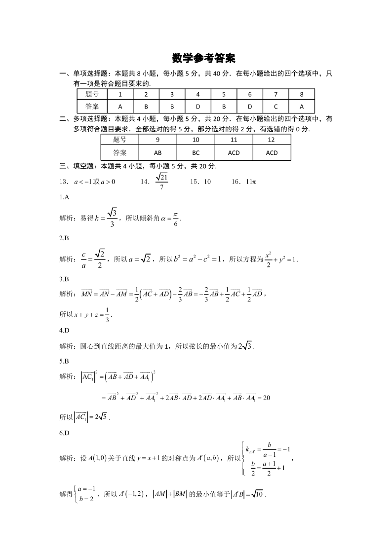 山东省名校考试联盟2023-2024学年高二上学期期中考试数学答案