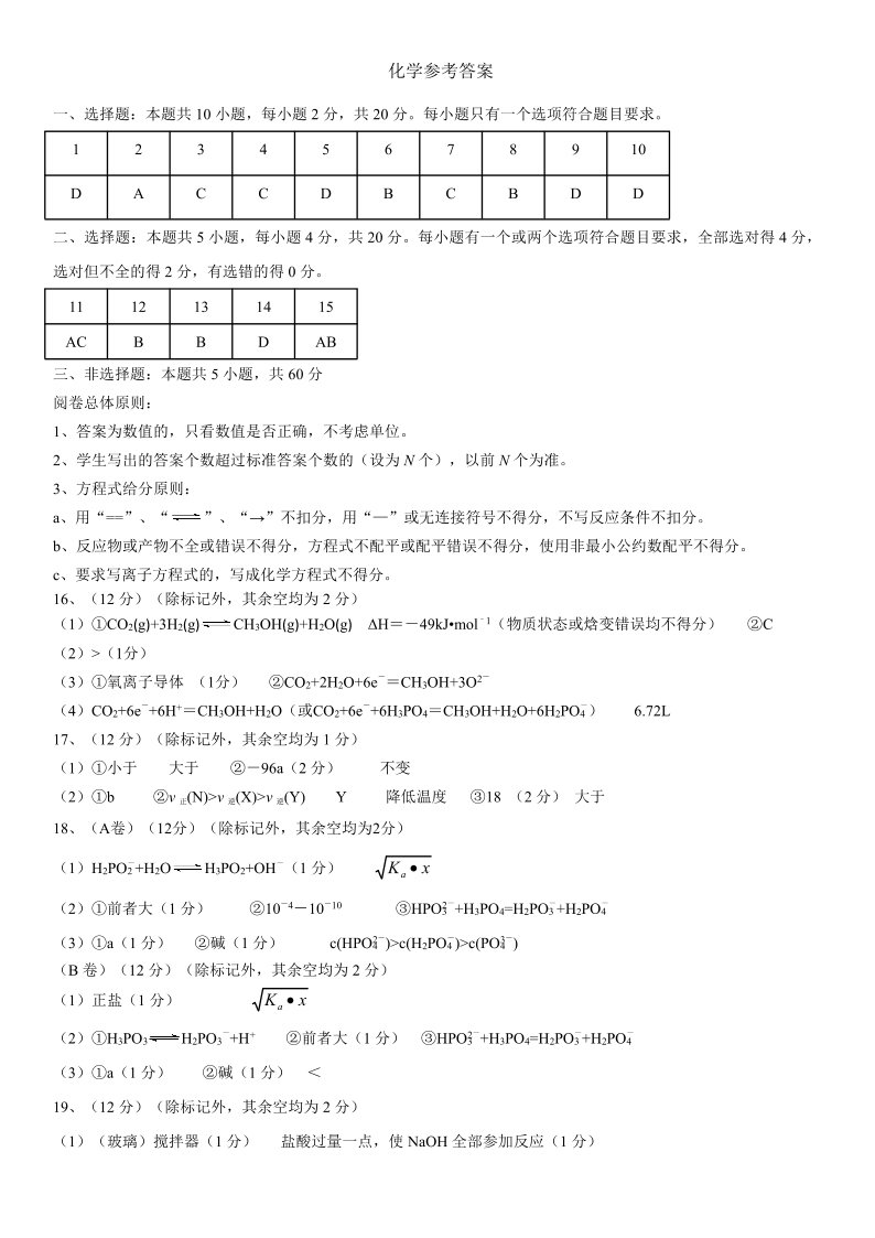 山东省名校考试联盟2023-2024学年高二上学期期中考试化学答案